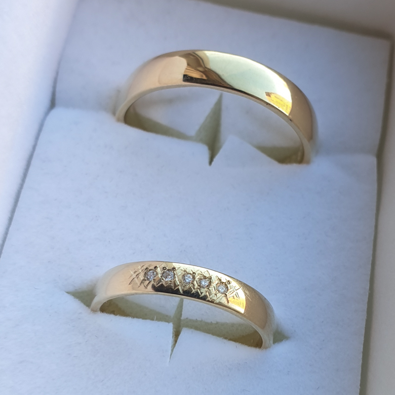 Soovi korral saab abielusõrmuseid tellida kollasest kullast ka madalama kullaprooviga (375), mis teeb hinna soodsamaks.