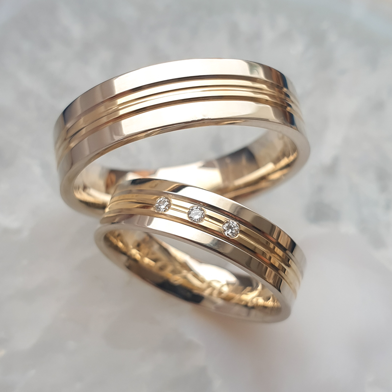 Abielusõrmused. Paar. Valge, kollane või punane kuld või nende kombinatsioonid.