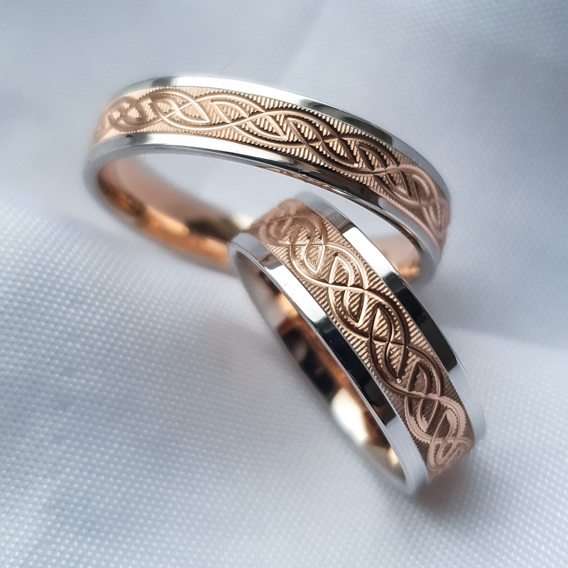 Abielusõrmused. Paar. Valge, kollane või punane kuld. Või nende kombinatsioonid.