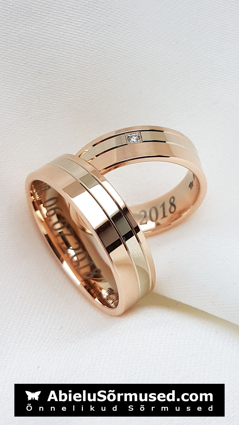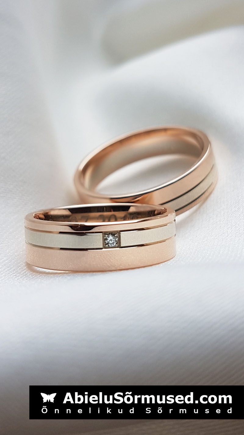 Abielusõrmused. Paar. Valge, kollane või punane kuld. Või nende kombinatsioonid.
