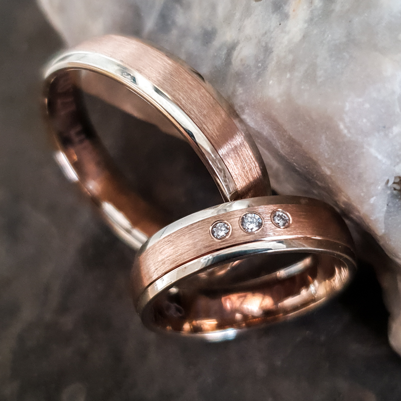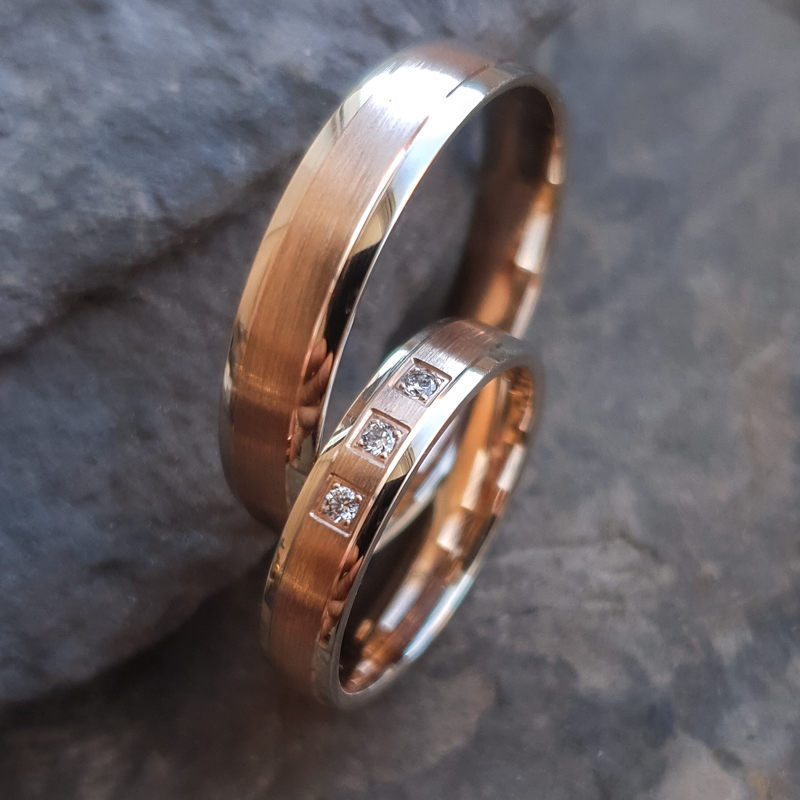 Abielusõrmused. Paar. Valge, kollane või punane kuld. Või nende kombinatsioonid.